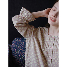 豆沙粉碎花·设计款圆领纯棉纱布春夏空调房长袖睡衣家居服套装新