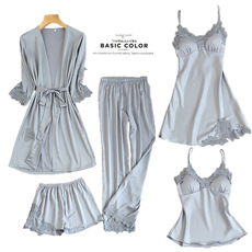 高品质睡衣女夏冰丝性感睡衣五件套春夏秋吊带家居服带胸垫睡衣