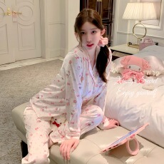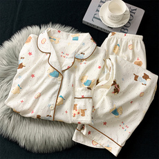 ins日系睡衣女春夏宽松卡通新款长袖长裤云朵棉网红风家居服套装