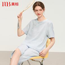 艺录新中式家居服 春夏季短袖中袖莫代尔冰丝复古汉服国风睡衣女