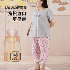 加肥加大码女士薄款纯棉短袖七分裤睡衣春夏季新款胖MM宽松家居服