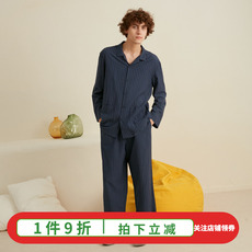 朵朵可可家居服睡衣新款春夏季男纯棉长袖长裤条纹休闲薄款套装
