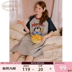 Gukoo/果壳短袖睡裙女春夏miiiiichan联名绿色休闲卡通居家睡衣