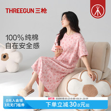 三枪春夏全棉睡裙女薄款甜美印花宽松纯棉柔软透气可外穿家居裙