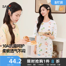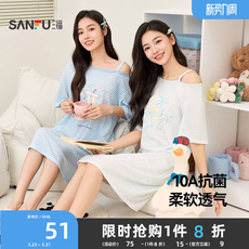 三福睡裙女生春夏季净雪花棉抗菌睡衣甜美印花宽松休闲短袖家居服