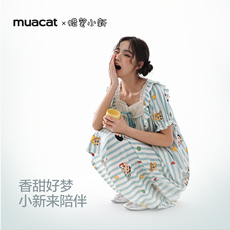 Gukoo/果壳短袖睡裙女春夏miiiiichan联名绿色休闲卡通居家睡衣