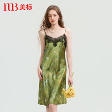 美标春夏新品真丝吊带睡裙女士桑蚕性感荡领可外穿长裙丝绸家居服
