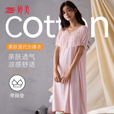 婷美超柔软莫代尔睡裙女2026新款春夏季清凉冰丝自带胸垫长款大码