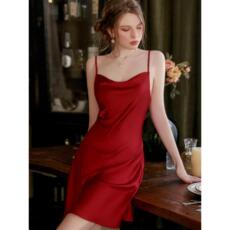 DIMDEVL汀黛26春夏新款睡衣晶红大女主新年红色性感露背吊带睡裙