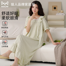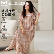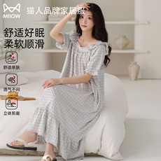 猫人短袖睡裙女2026新款春夏季高级感带胸垫长款宽松可外穿家居服