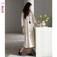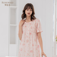 罗丝美2026春夏新16033纯棉贡缎印花圆领半开襟短袖中长款睡裙女