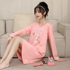 睡裙女士春秋季长袖连衣裙针织纯棉春夏睡衣可外穿甜美可爱家居服