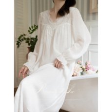 马克公主法式睡裙女春夏新款绝美凉感莫棉复古睡衣长款蕾丝连衣裙