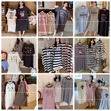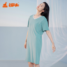雅婷雅雯新款春夏季短袖莫代尔棉女睡裙家居服中裙宽松睡衣裙凉感