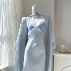 揭阳女神可爱甜美性感睡衣蕾丝睡袍抹胸吊带睡裙两件套冰丝春夏款