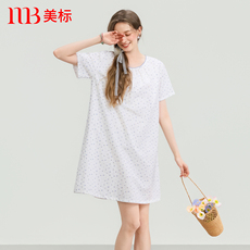 美标短袖纯棉睡裙女春夏公主风可外穿睡衣薄款双层棉纱全棉家居服