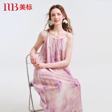 美标春夏新款吊带睡裙莱赛尔亚麻长裙晕染水墨画女薄款家居服睡衣