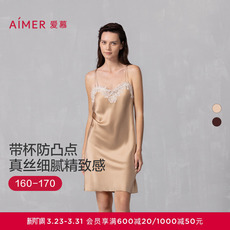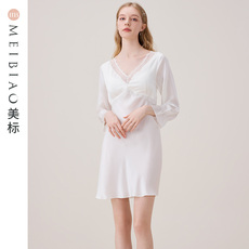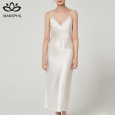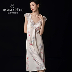 【断码清仓】美标重磅真丝睡裙女春夏100%桑蚕丝睡衣蕾丝绸家居服