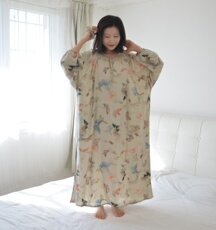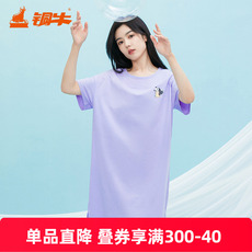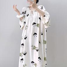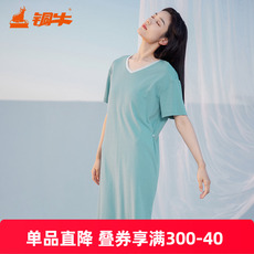 铜牛韶棉圆领半袖落肩家居女裙 春夏纯棉睡裙家居裙VQ076