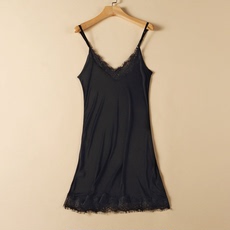 桑蚕丝吊带裙睡裙春夏新款气质性感睡衣宽松V领花边真丝打底衬裙