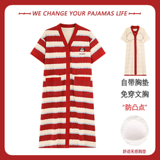 纯棉睡裙女春夏季带胸垫一体短袖开衫连衣裙大码可外穿学生家居服