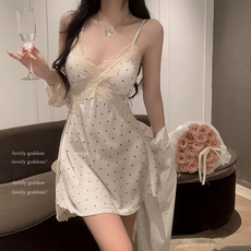 性感冰丝睡衣女士春夏季纯欲蕾丝边显瘦吊带睡裙外袍带胸垫家居服