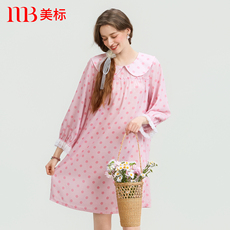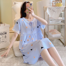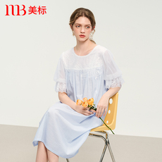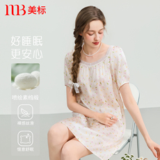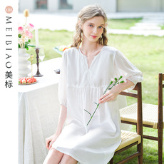 美标春夏新款短袖纯棉睡裙女双层棉纱甜美全棉质可外穿睡衣家居服