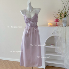 女士吊带睡裙春夏季蕾丝透明家居服冰丝绸薄透视性感睡衣女高级感