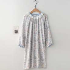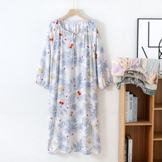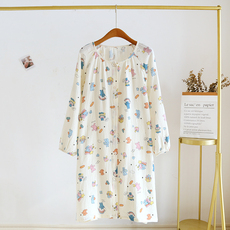 罗丝美春夏新品 圆领套头半开襟短袖睡裙纯棉双层纱12026