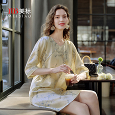 美标七分袖真丝睡裙女春夏新中式中国风桑蚕丝绸凉感家居服睡衣