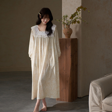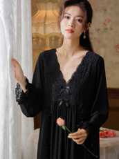 春夏复古宫廷风黑色睡衣蕾丝纱法式大码晨袍长袖性感长款睡裙仙女