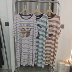 新款卡通印花条纹睡裙女士春夏季短袖圆领宽松休闲家居服睡衣8019