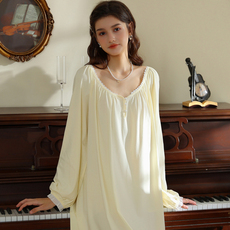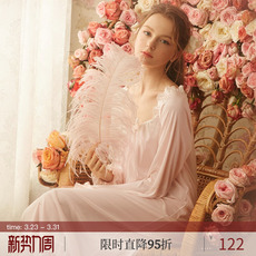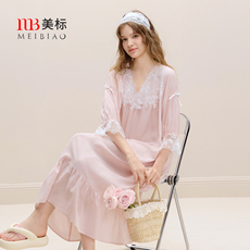 美标春夏七分袖睡裙宫廷法式睡衣莱赛尔天丝长裙蕾丝甜美风家居服