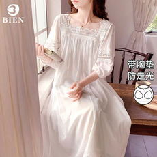 芬腾睡裙女春夏季薄款透气蕾丝吊带长裙带胸垫睡衣家居睡袍两件套