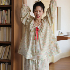 法式高级感棉纱睡衣女款碎花春秋女士纯棉布料100全棉家居服套装