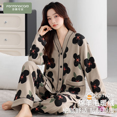 草本西子2026款德绒睡衣女秋冬季长袖加绒加厚保暖薄绒家居服套装