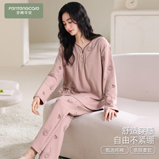 芬腾可安长袖睡衣女款2026新款纯棉带胸垫防凸点春秋款女士家居服