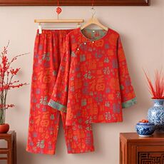 都市丽人纯棉睡衣结婚本命年大红女士家居服25年新款秋季套装男士
