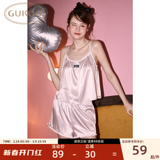 Gukoo/果壳睡衣女夏季高级感吊带背心套装雪纺打底女士家居服套装