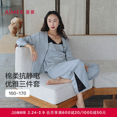 爱慕星序秋冬睡衣女开衫性感吊带家居服三件套AM46C431
