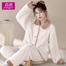 柔软舒适秋冬新款雪花绒家居服可外穿女士暖绒保暖法兰绒家居服