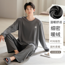 可外穿男防寒保暖双层复合绒家居服秋冬雪花绒睡衣套装宽松法兰绒