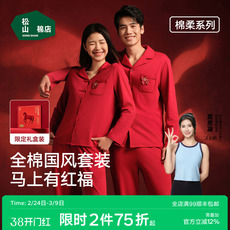 悦内半边绒睡衣女款冬季秋冬加厚珊瑚绒保暖家居服红色本命年马年