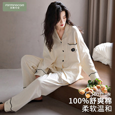 芬腾可安睡衣女款春秋季纯棉长袖女士2026新款可外穿花家居服冬天