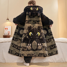 轩靓【抗静电】仿羊羔绒连帽睡袍女冬加绒加厚长款睡衣浴袍家居服