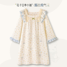 〖萌兔茶兔〗睡裙春秋季新款纯棉纱布睡衣甜美公主风长袖家居服