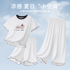 莫代尔短袖睡衣女春装大码长袖可外穿春季家居服薄款洋气两件套装