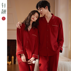轩靓莫代尔棉情侣睡衣女春秋长袖本命年红色结婚马年家居服男套装