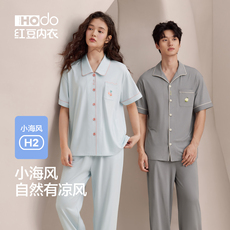 红豆睡衣短袖长裤男女士棉莫代尔抗菌防螨带胸垫空调服家居服套装
