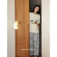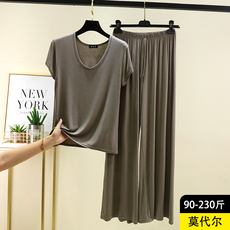 莫代尔圆领家居服套装女夏季薄款短袖长裤两件套休闲大码家居服